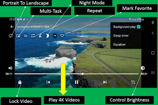 MK player helps you play videos in the background. You can play videos in the background smoothly and have access to quick control panel that helps you control the video.