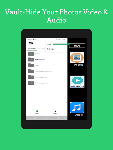 Mk Player helps you hide Your Photos, Videos and Audio in a secret Vault…. isn’t that great? You can hide the photos in an inbuilt vault. This will help you keep your photos, videos and Audio safe from snooping eyes and keep you safe.