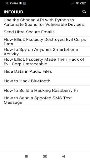 This application acts as a hub for the info-sec world by bringing all the important material at one place. The app has different sections for its user, accordingly.