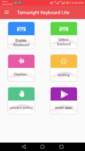 keypad lite by own setting. Lot of different emoji, emotion and smiles are integrated for you to chat with some one special. Also you can Change the keyboard Tamazight
