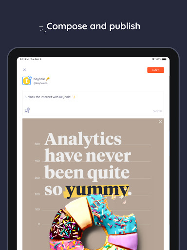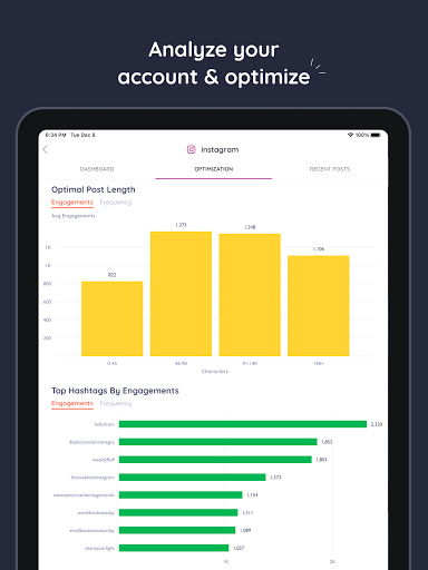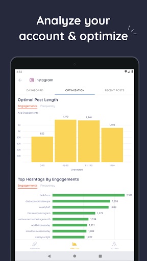 Analytics วิเคราะห์ (เป็น Add-on) โปรไฟล์ของคุณและค้นหาของคุณ เนื้อหาที่มีส่วนร่วมมากที่สุดเวลาที่ดีที่สุดในการโพสต์และ hashtag ที่จะใช้เพื่อประสิทธิภาพที่ดีขึ้น