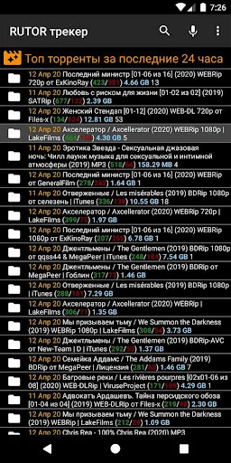ค้นหาการแจกแจงจากไซต์ Rutor (ลูกค้าที่ไม่เป็นทางการ)แสดงการแจกแจงตามผู้อำนวยการเว็บไซต์อย่างเป็นทางการพร้อมการรับชมการกระจายอย่างละเอียดใช้เสียงและการค้นหาตามปกติตามชื่อหรือประเภทการแจกจ่าย