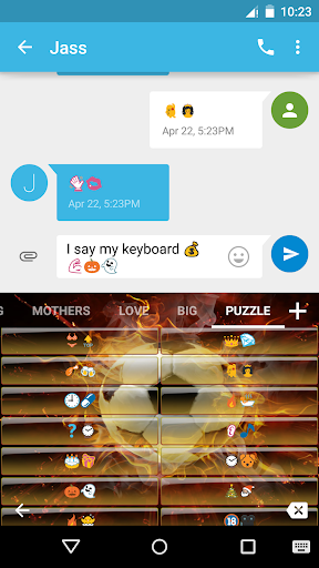 ชุดรูปแบบแป้นพิมพ์ฟุตบอล Emoji ทำให้แป้นพิมพ์ของคุณสวยงามมากตามที่คุณต้องการ อย่าพลาดชุดแป้นพิมพ์ Emoji Emoji ใหม่ล่าสุด! รับคีย์บอร์ดฟุตบอล Emoji ฟรี! ทำให้โทรศัพท์ของคุณป๊อปท่ามกลางเพื่อนของคุณด้วยการคว้าธีมแป้นพิมพ์ Emoji ฟุตบอลนี้