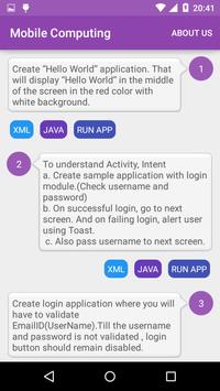 This App Contains All Questions covered in GTU MCA SEM 5 Mobile Computing Practical Subject. App has features like: 1. View XML Code 2. View Java Code 3, Run the Particular App.