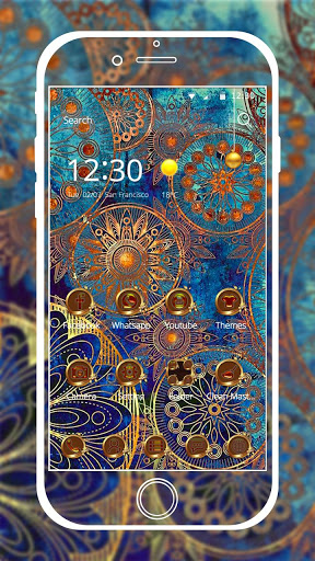 This is a dark blue with yellow golden wallpaper pattern of the steel iron spring summer google mobile phone theme, applicable to any mobile phone either iPhone or Samsung mobile phone,a variety of luxury fashion beautiful golden circle shaped flowers atmosphere by female love, strong metal style makes this theme not only girlish can also be used by successful business men.icon is made of brown smooth appearance like chocolate and coffee gift packaging lovely bow, flying butterflies in the sky,the most beautiful love red yellow roses, so the blue screen like graffiti art such as Paris London are dazzling, in the upcoming Valentine's day as a surprise gift for an angel who you love most, spend the best days getting better, A cartoon bow means pure love, sweet kisses and gentle hugs and sincere wishes for tomorrow and the future.