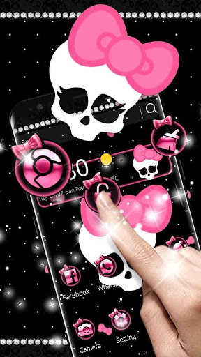 1. Pink Cute Skull Theme with black pink icon pack HD live wallpaper.