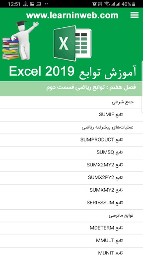 آموزش تمامی توابع اکسل 2019 تعاملی و شبیه سازی شده با صدا و متن فارسی سه بخش اول رایگان بعد از دانلود نیاز به اینترنت در زمان آموزش نیست