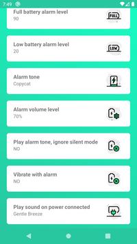 With custom battery level, you can choose alarm tone, volume level of alarm, notifications, Beep sound on power connected or disconnected, Small functions those are really useful and must have bydefault.