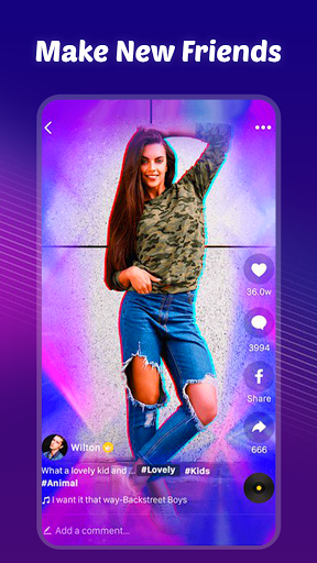 เช่นเดียวกับวิดีโอข้อเสนอเพื่อทำให้วิดีโอของคุณเป็นที่นิยม คุณสามารถเลือกเพลงอินเทรนด์ทั้งหมดที่คุณต้องการสร้างวิดีโอที่น่าประทับใจเกมเช่นเดียวกับวิดีโอมี GIFs, Emoji, สติกเกอร์สร้างสรรค์ เช่นเดียวกับวิดีโอทำให้ผู้ใช้สามารถแก้ไขวิดีโอและสไลด์โชว์ได้อย่างง่ายดาย