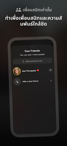 สำหรับเพื่อนสนิทของคุณ • เพื่อให้ทุกอย่างเป็นมิตร คุณสามารถมีเพื่อนในแอพได้เพียง 20 คนเท่านั้น • ใน Locket ไม่ต้องกังวลเรื่องจำนวนผู้ติดตาม เพียงแค่เพิ่มเพื่อนและครอบครัวที่ดีที่สุดของคุณและใช้ชีวิตในช่วงเวลานั้น