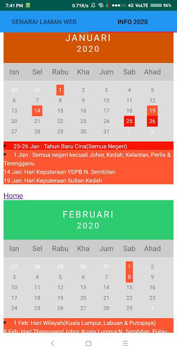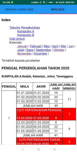 Info 2020: Memaparkan takwim persekolahan tahun 2020, cuti umum dan kalendar 2020.