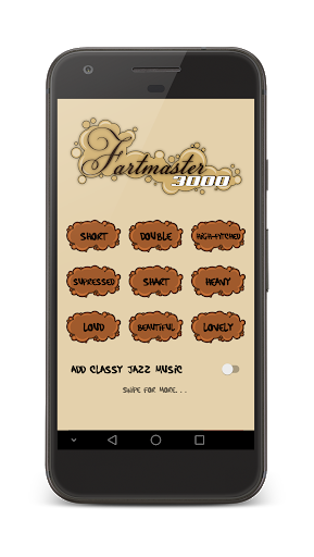 The fart sound board includes several lovely fart sounds and the revolutionary option to play a classy jazz tune as background music. Finally, mobile farting has style!