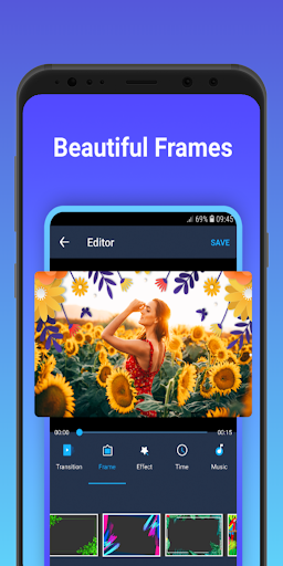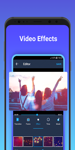 - create videos from photos and music: choose your most favorite photos, customize effect transitions, edit photos, add music to the library or on the device, choose the frame that suits the theme you create, add layer videos overlay live layer effect