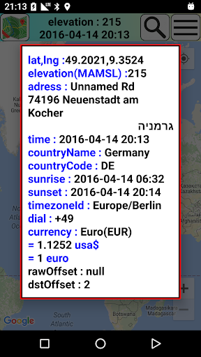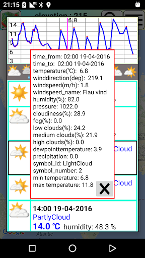 Click on the map or search a place , and get information: Very accurate 10 days weather , Geo data like elevation , time, sunrise, sunset, country, currency Placec around from Wikipedia And muck much more.