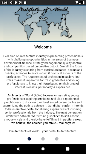 สถาปนิกของโลก (AOW) มุ่งเน้นไปที่การช่วยเหลือมืออาชีพรุ่นเยาว์สถาปนิกที่ต้องการและ ผู้ปฏิบัติงานที่มีประสบการณ์ในการค้นพบโปรไฟล์อาชีพที่เหมาะสมที่สุดและปรับแต่งเส้นทางเพื่อให้บรรลุ แพลตฟอร์มดิจิทัลของเรามุ่งมั่นที่จะเป็นพอร์ทัลแบบอินเทอร์แอคทีฟสำหรับการแบ่งปันประสบการณ์ของผู้เชี่ยวชาญอาวุโสที่สร้างแรงบันดาลใจจากอุตสาหกรรม สถาปนิกรุ่นต่อไปสามารถอ้างถึงพวกเขาในฐานะที่เป็นแนวทางในการประเมินตนเองเลือกอย่างชาญฉลาดและมีการตอบสนองและมีผลกระทบต่ออาชีพ เราเชื่อว่าตัวเลือกที่คุณทำ ... ทำให้คุณ !!