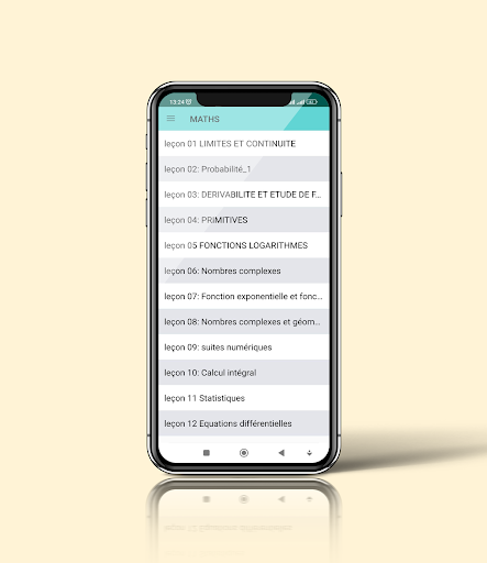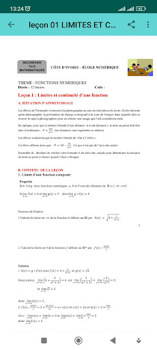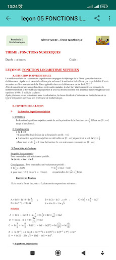 แอปพลิเคชันนี้มีหลักสูตรคณิตศาสตร์สำหรับนักเรียนในระดับมัธยมปลายบทสรุปและการออกกำลังกายที่แก้ไขสำหรับบทเรียนทั้งหมดที่ไม่มีอินเทอร์เน็ต