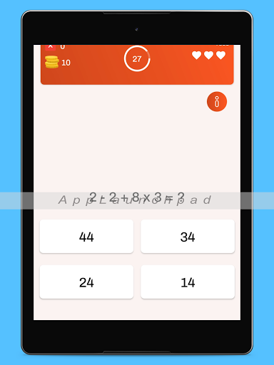 ทดสอบความคิดของคุณและปรับปรุงทักษะคณิตศาสตร์ของคุณโดยแก้ปัญหาคณิตศาสตร์! - แบบทดสอบคณิตศาสตร์ขึ้นอยู่กับจิตวิทยาการเรียนรู้คณิตศาสตร์ขั้นพื้นฐานเพื่อช่วยให้คุณฝึกทักษะทางจิตที่แตกต่างกัน: หน่วยความจำ, ความเร็ว, ความสนใจ, ตรรกะ, คณิตศาสตร์, สมาธิ, ความเข้มข้นตารางเวลาและอื่น ๆ แบบทดสอบคณิตศาสตร์