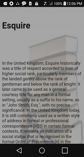 In the United Kingdom, Esquire historically was a title of respect accorded to men of higher social rank, particularly members of the landed gentry above the rank of gentleman and below the rank of knight. It later came to be used as a general courtesy title for any man in a formal setting, usually as a suffix to his name, as in "John Smith, Esq.", with no precise significance. In the United Kingdom today, it is still commonly used as a written style of address in formal or professional correspondence.[4][5] In certain formal contexts, it remains an indication of a social status that is recognised in the formal Order of Precedence.[6]