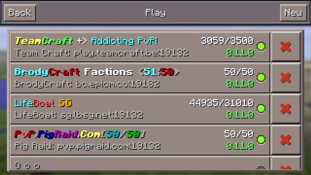 This app has over 20 servers, and shows if they are online, the minecraft pe version, and the number of players online!
