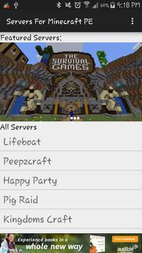 Servers for Minecraft PE allow you to easily select a server, then add it to your minecraft pe app for easy access without the hassle! It takes only a second, and does not take up much space.