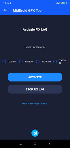 • 90 FPS ปิดเกมถ้ามัน ขณะนี้ทำงานก่อนเริ่มต้นเครื่องมือ Middroid GFX