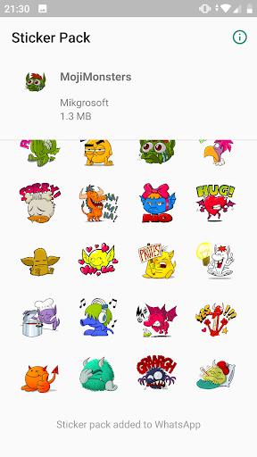 มีการแชร์สติ๊กเกอร์ WhatsApp พร้อมใช้งานแล้วMojimonsters มีสติกเกอร์ที่แตกต่างกัน 24 สติกเกอร์เพื่อส่งให้เพื่อนของคุณ