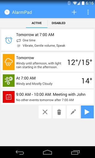 AlarmPad brings context to your alarms. Set an alarm and see right away the weather forecast and your calendar appointments for the day and time following your alarm. AlarmPad listens to your calendar updates and offers beautiful widgets that put in one place your next alarm, calendar appointment and weather forecast. It also allows you to listen to your personal messages and speak voice commands to dismiss or snooze the alarm.