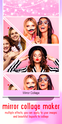 Enjoy our creative mirror collage maker and mix up to 10 photos in various different shapes: lula collage, stitch collage, 3D collage and mirror collage. Dwell into the art collage and reverse photos and look like a twin or reverse it and let others see your reflections on mirror. Add as many stickers as you want with the help of our wide gallery of stickers such as heart stickers, valentine stickers, live stickers and motion stickers. You can also have much fun using our tremendous window of frames up to date with different events more like Valentine frames, Christmas frames, New Year’s Eve frames and so many other frames ready for you to use as you wanted.