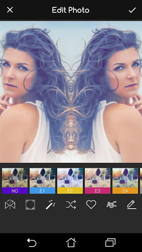 Magic mirror photo effect allows you to create mirror reflection effect for your photos and make photos artistic, fantastic and incredible. With Magic mirror photo effect, You create beautiful photo with mirror effect, cool filters and beautiful frames.