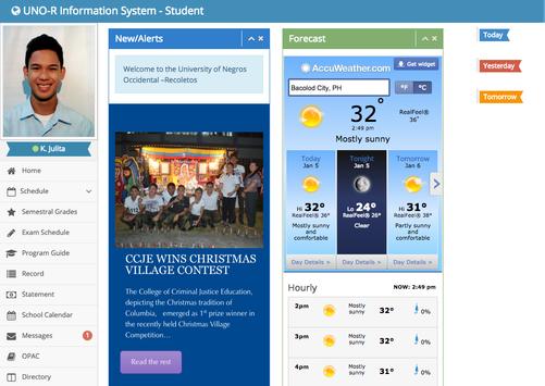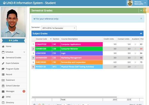 The UNO-R Information System app lets you communicate with your instructor, review your personal data and statement of account, quickly see what’s up around UNO-R, and help you keep track of your grades on-the-go.
