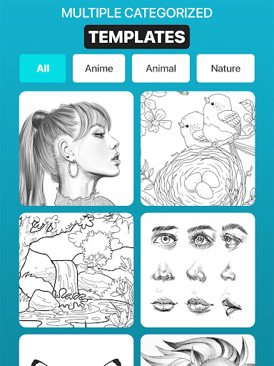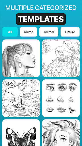 แอพ Sketch AR นี้มีภาพที่กำหนดไว้ล่วงหน้าหนึ่งร้อยภาพจากหมวดหมู่ต่าง ๆ เช่นสัตว์การ์ตูนอาหาร, นก, ต้นไม้, Rangolis และภาพอื่น ๆ อีกมากมาย & amp;ภาพวาดร่าง