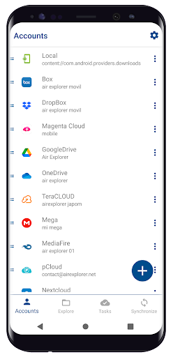 Air Explorer สำหรับ Android มีไว้สำหรับการเข้าถึงบัญชีคลาวด์หลายบัญชีจากการใช้งานเดียว ในการนี้เครื่องมือนี้รองรับการเชื่อมต่อกับบริการจัดเก็บข้อมูลออนไลน์ต่างๆเช่น Google Drive, OneDrive, Dropbox, Mega, MediaFire, Yandex และอื่น ๆ ยิ่งไปกว่านั้นมันเข้ากันได้กับ S3, WebDAV, FTP และ SFTP ซึ่งหมายความว่าคุณสามารถเชื่อมต่อกับเซิร์ฟเวอร์อื่น ๆ ที่ใช้โปรโตคอลเหล่านี้