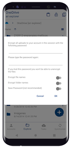 Air Explorer สำหรับ Android ช่วยให้คุณนำทาง, คัดลอก & วาง, ตัด, ลบ, เปลี่ยนชื่อ, การถ่ายโอน, การถ่ายโอน, ดาวน์โหลด, ดาวน์โหลด & อัปโหลดและจัดระเบียบไฟล์และโฟลเดอร์ในคลิดและอุปกรณ์ของคุณ นอกจากนี้คุณยังสามารถใช้ Air Explorer เพื่อซิงโครไนซ์และเข้ารหัสไฟล์คลาวด์ของคุณแท็บ Multiple: หลายแท็บใน carrousel ที่ช่วยให้การสำรวจเมฆแตกต่างกันไปพร้อมกัน สิ่งนี้ทำให้สามารถคัดลอกและวางระหว่างคลาวด์ได้อย่างง่ายดาย