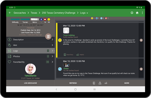 - การค้นพบ GeoTours แบบบูรณาการและรายการของ Geocaches