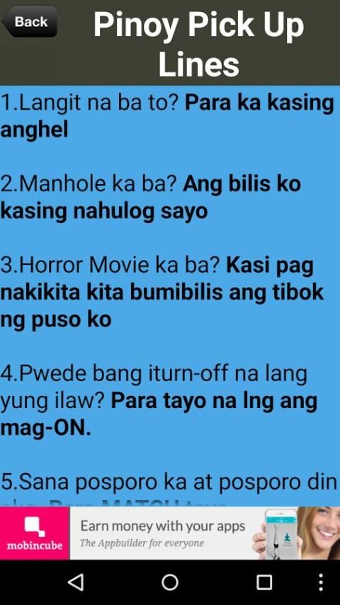 With the development of technology, more and more apps appeared in the mobile market. 10,000+ users downloaded Pinoy Pick Up Lines & Funny Jokes latest version on 9Apps for free every week! In addition, the latest version of the app has updated a lot of features. This hot app was released on 2017-04-10. It get a lot of recognition after release.