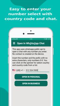 application without saving contact number with the select country code. simple enter number to go for a chat on over business. it`s amazing application to help for life.