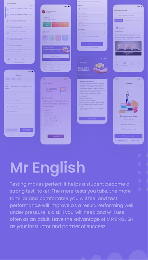 การทดสอบทำให้สมบูรณ์แบบมันช่วยให้นักเรียนกลายเป็นผู้ทดสอบที่แข็งแกร่งยิ่งคุณทำการทดสอบมากเท่าไหร่คุณก็จะรู้สึกคุ้นเคยและสะดวกสบายมากขึ้นและประสิทธิภาพการทดสอบจะดีขึ้นการทำงานที่ดีภายใต้ความกดดันเป็นทักษะที่คุณต้องการและมักจะใช้เป็นผู้ใหญ่มีข้อได้เปรียบของ Mr English ในฐานะอาจารย์ผู้สอนและเป็นหุ้นส่วนแห่งความสำเร็จ