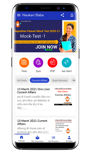 Naukari Baba App มอบรูปแบบการทดสอบและการทดสอบแบบทดสอบและการสอบที่ดีที่สุดในภาษาฮินดีสำหรับการสอบ 100 ครั้ง