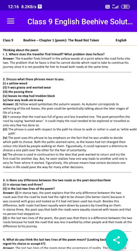 In this app you will get ncert solutions for class 9 english beehive and poem.