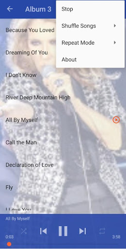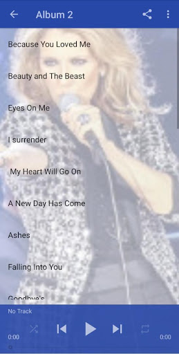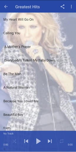 This application have the best and greatest hit of Celine Dion songs , albums and many more and as you know she is everyone favorite. Enjoy Good music. thank you.