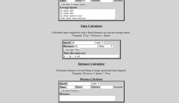 With this handy calculator, you can figure out your average speed, distance traveled or time needed.
