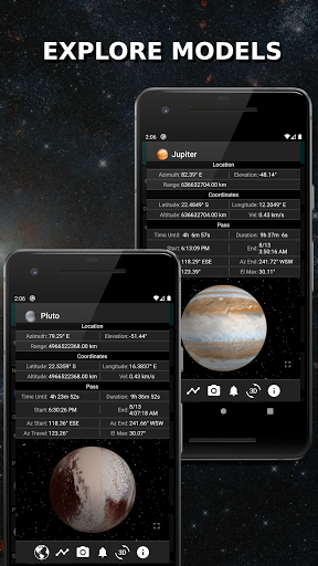 ช่วยให้คุณค้นพบว่าวัตถุจำนวนมากเหนือโลกอยู่ที่ไหนตลอดเวลาและสถานที่ดาวเทียม, จรวด, เศษซาก, ดาวเคราะห์, ดวงจันทร์, สถานีอวกาศนานาชาติและดวงดาวบางดวงสามารถดูได้ในเวลาและสถานที่ที่คุณเลือก (อดีตปัจจุบันและอนาคต)คุณสามารถดูตำแหน่งตำแหน่งจริงโดยใช้กล้องของคุณคำนวณพิกัดและดูบนแผนที่เหตุการณ์ในอนาคต/ตำแหน่งที่ผ่านมาหรือแม้แต่บันทึกข้อมูลที่จะใช้ที่อื่นไม่จำเป็นต้องมีการเชื่อมต่ออินเทอร์เน็ตเพื่อทำการคำนวณและไม่มีการเก็บข้อมูลส่วนบุคคลไว้นอกอุปกรณ์ของคุณ