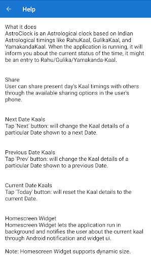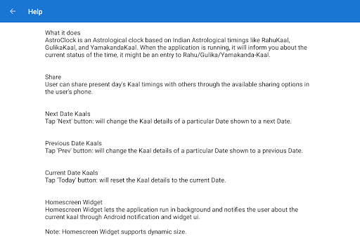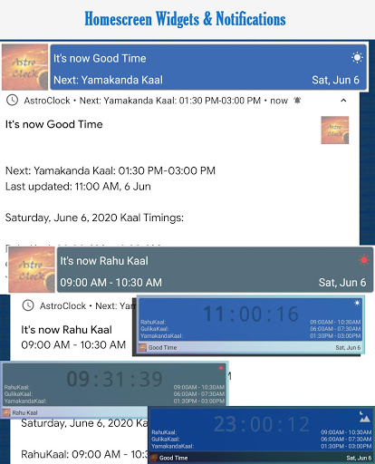 - Homescreen Widget lets the application run in background and notifies the user about the current kaal through Android notification and widget ui.