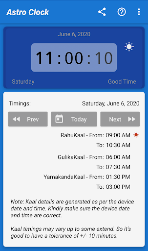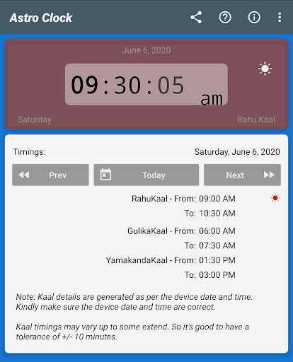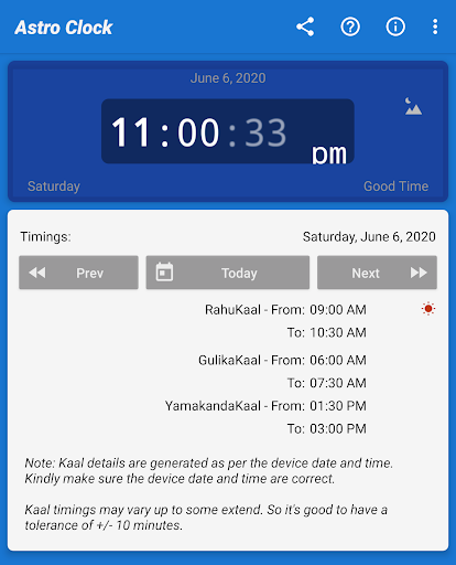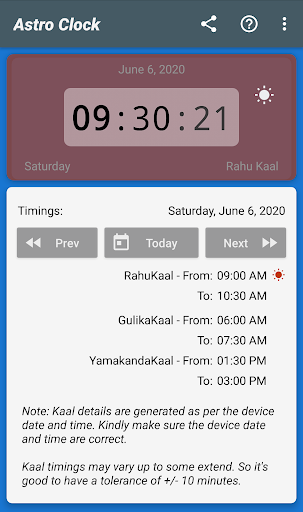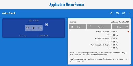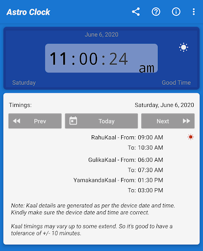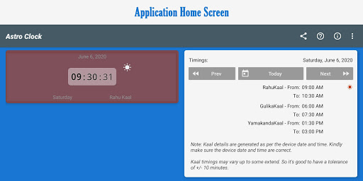 Astro Clock is an Astrological clock based on Indian Astrological timings like RahuKaal, GulikaKaal, and YamakandaKaal. It will inform you about the current status of the time, it might be an entry to Rahu/Gulika/Yamakanda-Kaal.