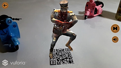 > Ones a Marker scanned, your selected zombie will appear and start dancing.