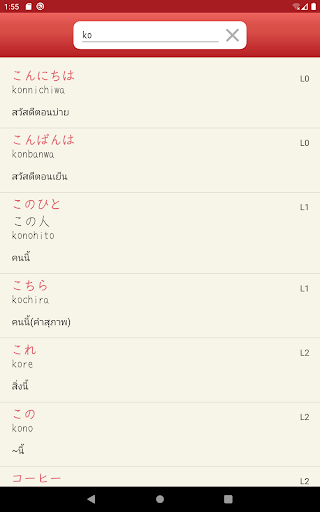 ค้นหาศัพท์จากKanji, Kana, Romaji, หรือคำแปล