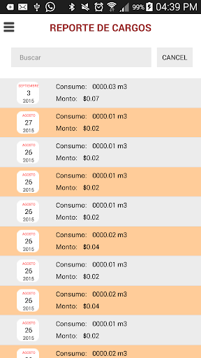 Aplicación que muestra el consumo, cargos, depositos y abonos de gas.