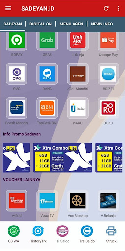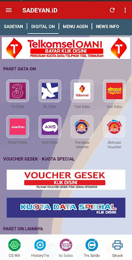 แอปพลิเคชัน sadeyan.id เป็นเครดิตแพคเกจและการชำระเงินของ ppob. แพ็คเกจข้อมูลบัตรกำนัลหุ้น - PPOB - การชำระเงินอีคอมเมิร์ซ - เสร็จสิ้นประวัติ TRX ที่สมบูรณ์