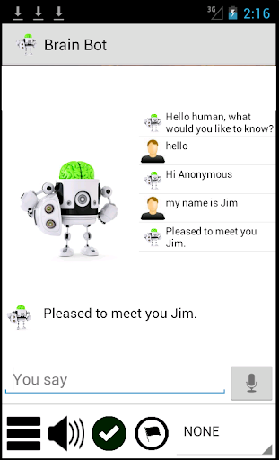 Brain Bot understands many phrases and can answer most questions.