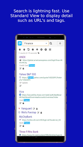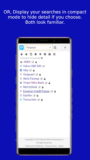 Passfindr ไม่ได้เป็นเพียงตัวจัดการรหัสผ่านหรือผู้จัดการบุ๊คมาร์ค Passfindr นิยามที่คั่นหน้าเป็นเกือบทุกอย่างที่คุณต้องการให้เป็น หากคุณสามารถพิมพ์ได้ passfindr สามารถเก็บได้ค้นหาและเข้ารหัสหรือไม่ Passfindr มีความทุ่มเทที่สมบูรณ์และรวมเพื่อความน่าเชื่อถือและความปลอดภัยของคุณ ผ่านเว็บโดยสิ้นเชิง passfindr ไม่ต้องการช่องโหว่เช่นแอพพื้นเมือง, ซอฟต์แวร์ที่ดาวน์โหลด, ส่วนขยายของเบราว์เซอร์, ส่วนเสริมหรือปลั๊กอิน Passfindr ยังไม่ต้องซิงค์! การเปลี่ยนแปลงทุกครั้งการปรับเปลี่ยนทุกรายการใหม่ทุกรายการจะสามารถใช้ได้ในทุกอุปกรณ์ทันที passfindr ไม่สามารถเลือกได้ มันใช้งานได้กับเบราว์เซอร์ปัจจุบันที่สมเหตุสมผล, เวอร์ชั่น Android, Mac OS, IOS หรือเวอร์ชัน Microsoft Windows ใด ๆ บนอุปกรณ์ใด ๆ หากคุณติดอยู่บนภูเขาในเทือกเขาแอลป์และต้องการข้อมูลออฟไลน์ Passfindr มีทางออกสำหรับสิ่งนี้เช่นกัน